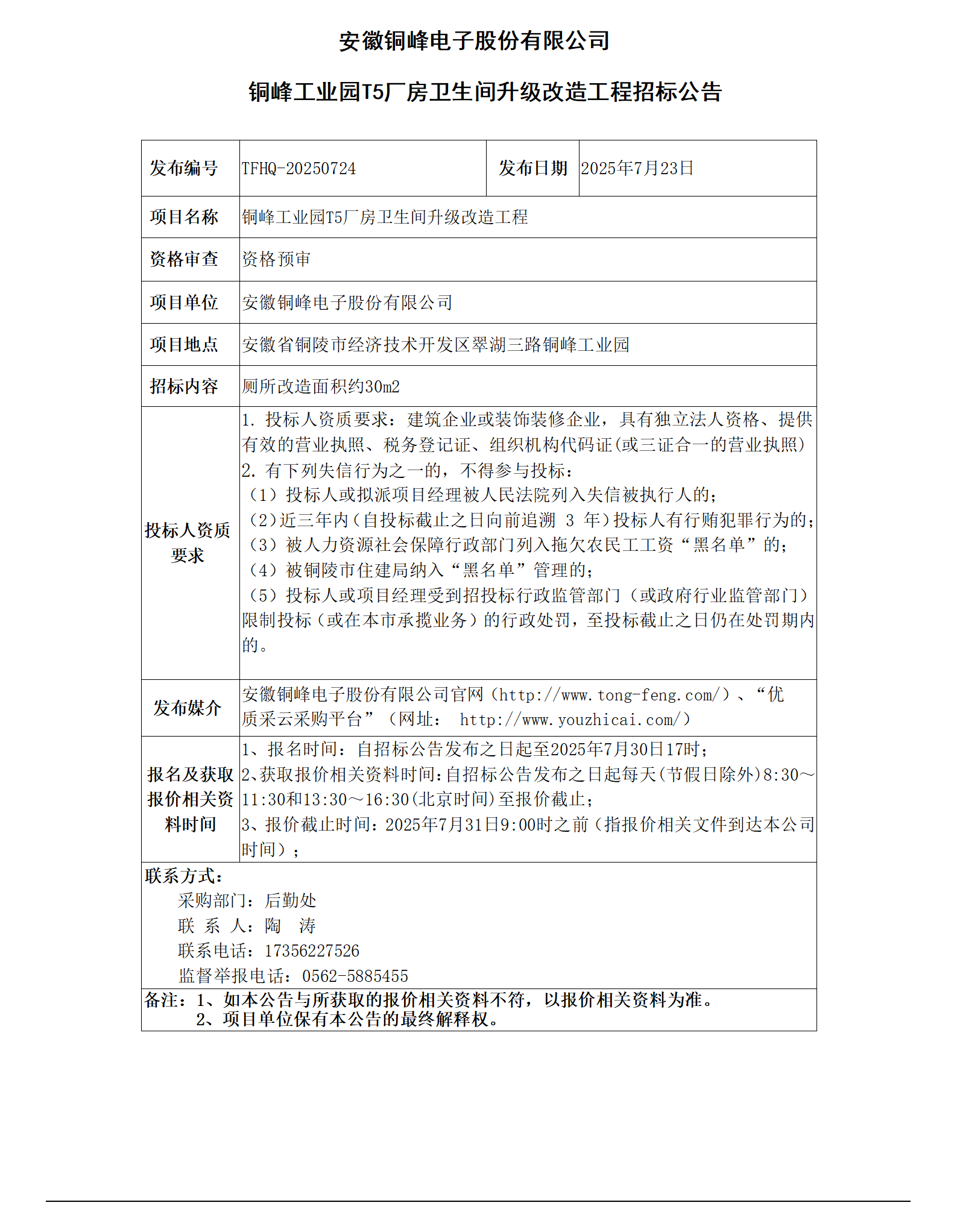 安徽旋乐吧SPIN8电子股份有限公司 (旋乐吧SPIN8工业园T5厂房卫生间升级改造工程招标公告)_01