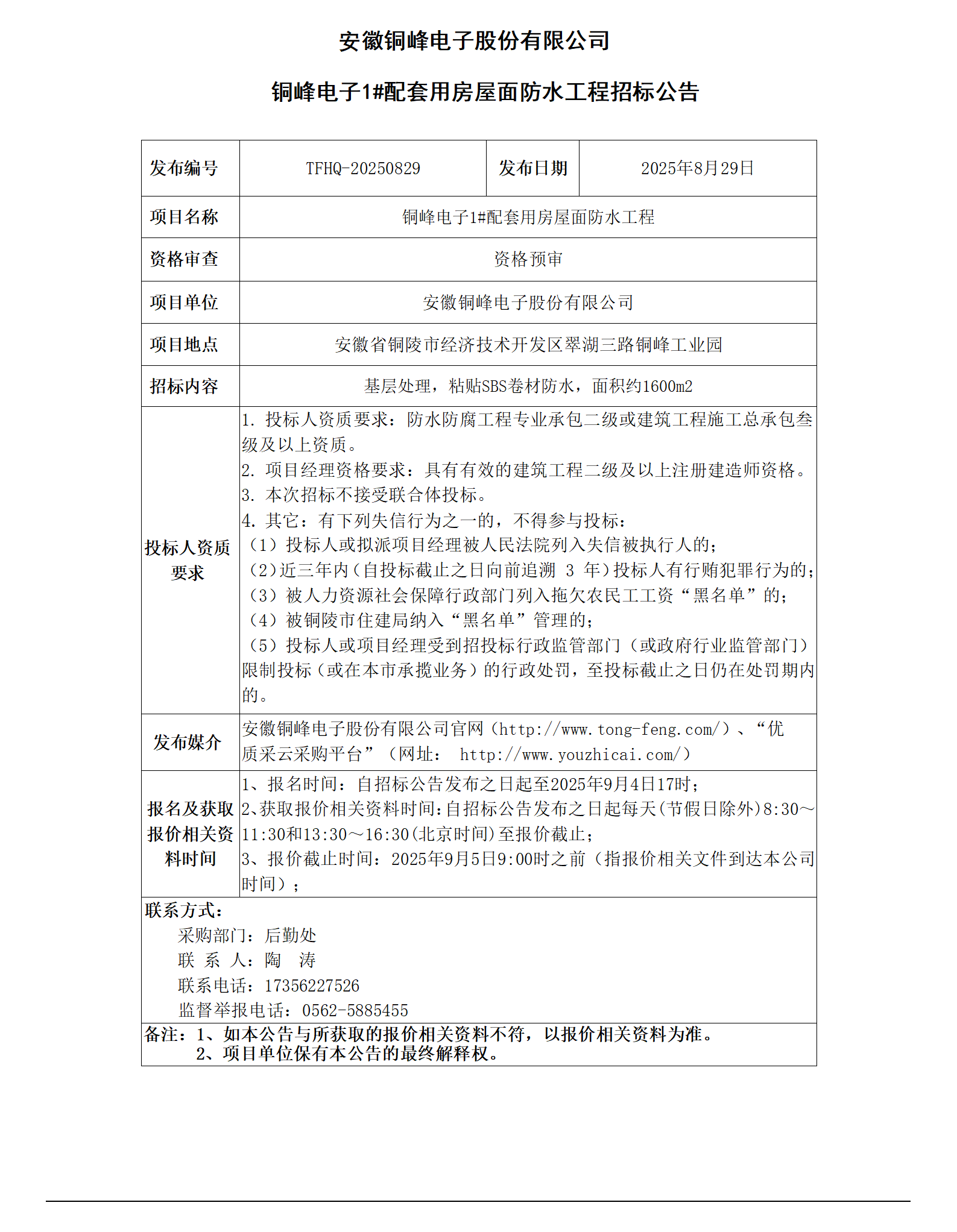 安徽旋乐吧SPIN8电子股份有限公司 (旋乐吧SPIN8电子1#配套用房屋面防水工程 招标公告)_01