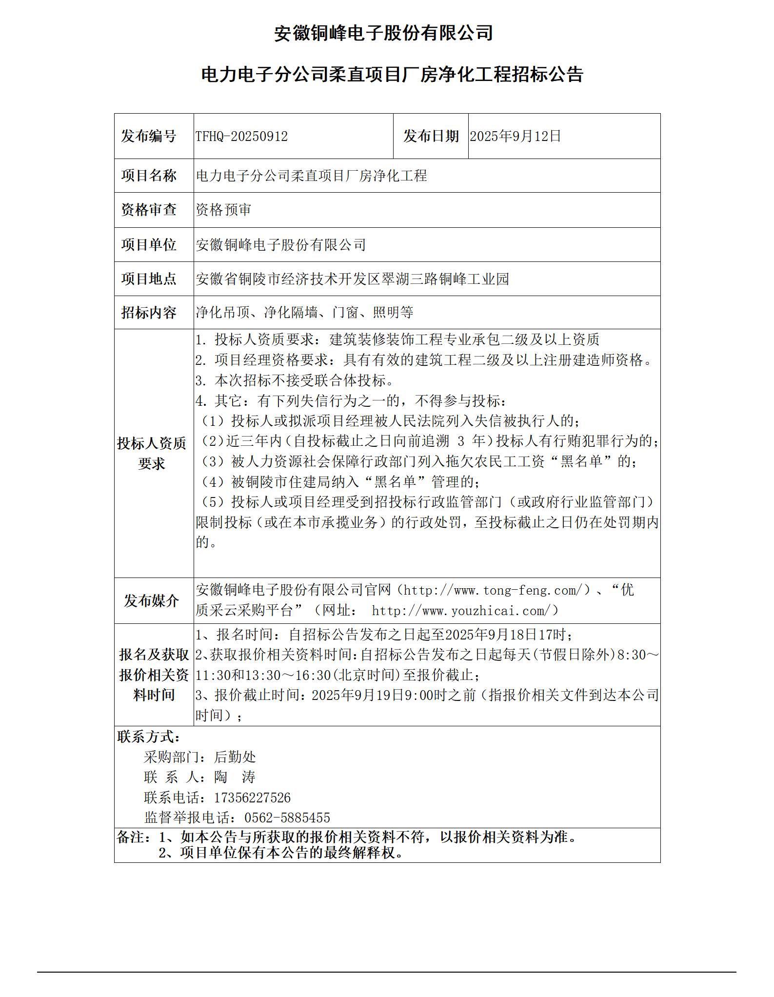 01安徽旋乐吧SPIN8电子股份有限公司 (电力电子分公司柔直项目厂房净化工程 招标公告)_01