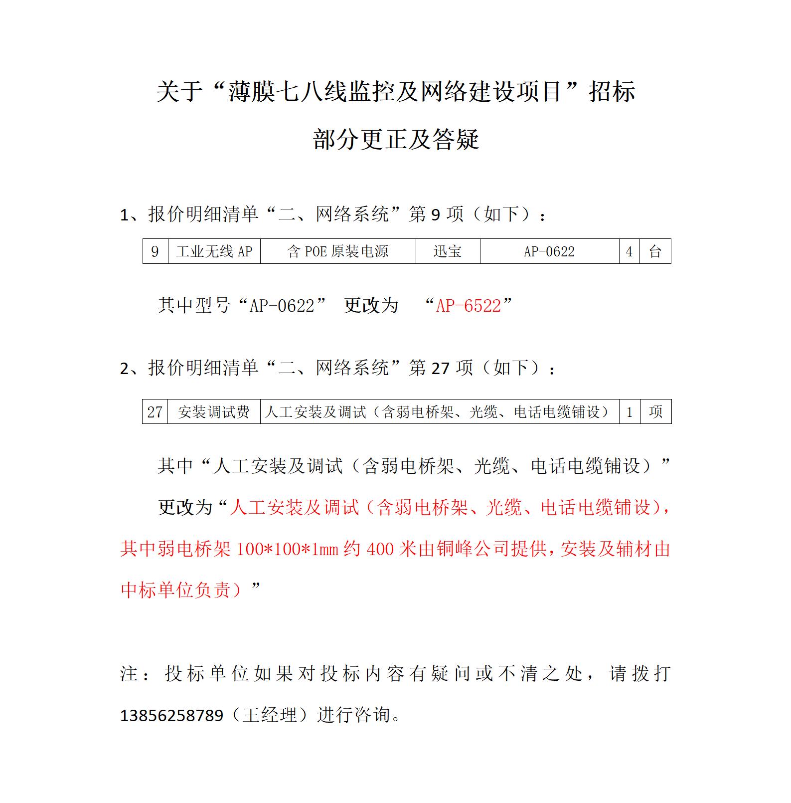 旋乐吧SPIN8薄膜七八线监控及网络项目—招标清单更改及答疑