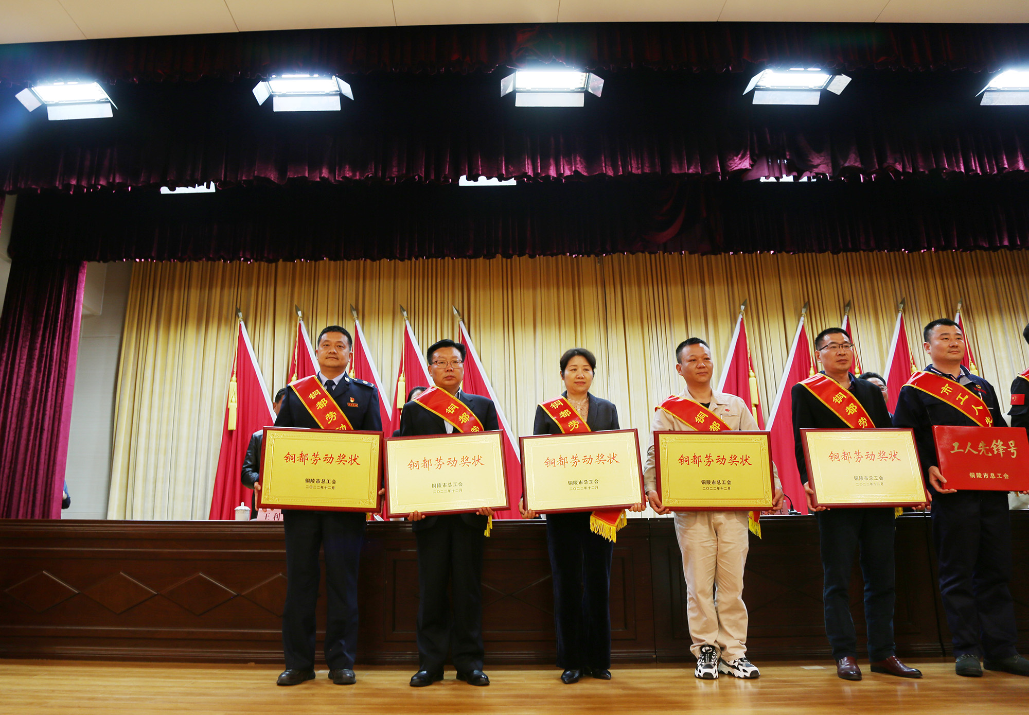3月10日上午,铜陵市总工会在铜官区行政会议中心礼堂召开2022年度工会工作颁奖大会。市人大副主任、总工会主席陈昌生出席大会颁奖并讲话。会上对2022年职工技术创新竞赛、铜都劳动奖和市工人先锋号、劳动和技能竞赛获奖集体和个人、工会工作先进集体和先进个人进行了表彰,公司获评“铜都劳动奖状”、薄膜分公司工会主席黄爱为获评“优秀工会工作者”。