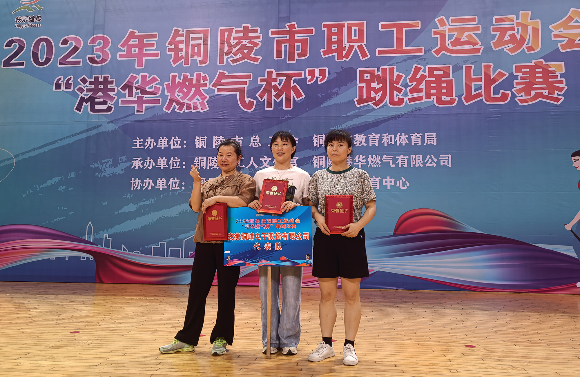 7月15日,由铜陵市总工会和教育体育局主办的2023年铜陵市职工运动会跳绳比赛在市体育中心举行。公司选送4名选手参加“女子一分钟跳绳”比赛项目。经过激烈角逐,公司参赛选手取得优异成绩,张素珍、孙艳红包揽冠亚军,吴艳获得第六名。