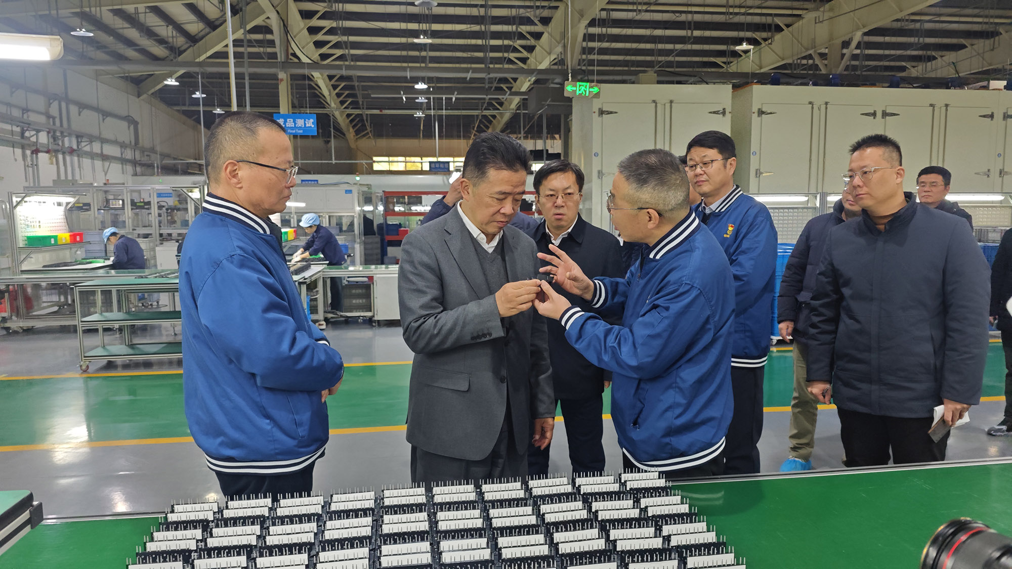 峰成电子公司专业生产新能源汽车用电容器。杨宏星一行前往生产车间认真了解产品性能、市场拓展、发展前景等情况,对公司抢抓新能源产业机遇,加快新品研发和市场开拓,实现产销规模持续快速增长予以高度认可。